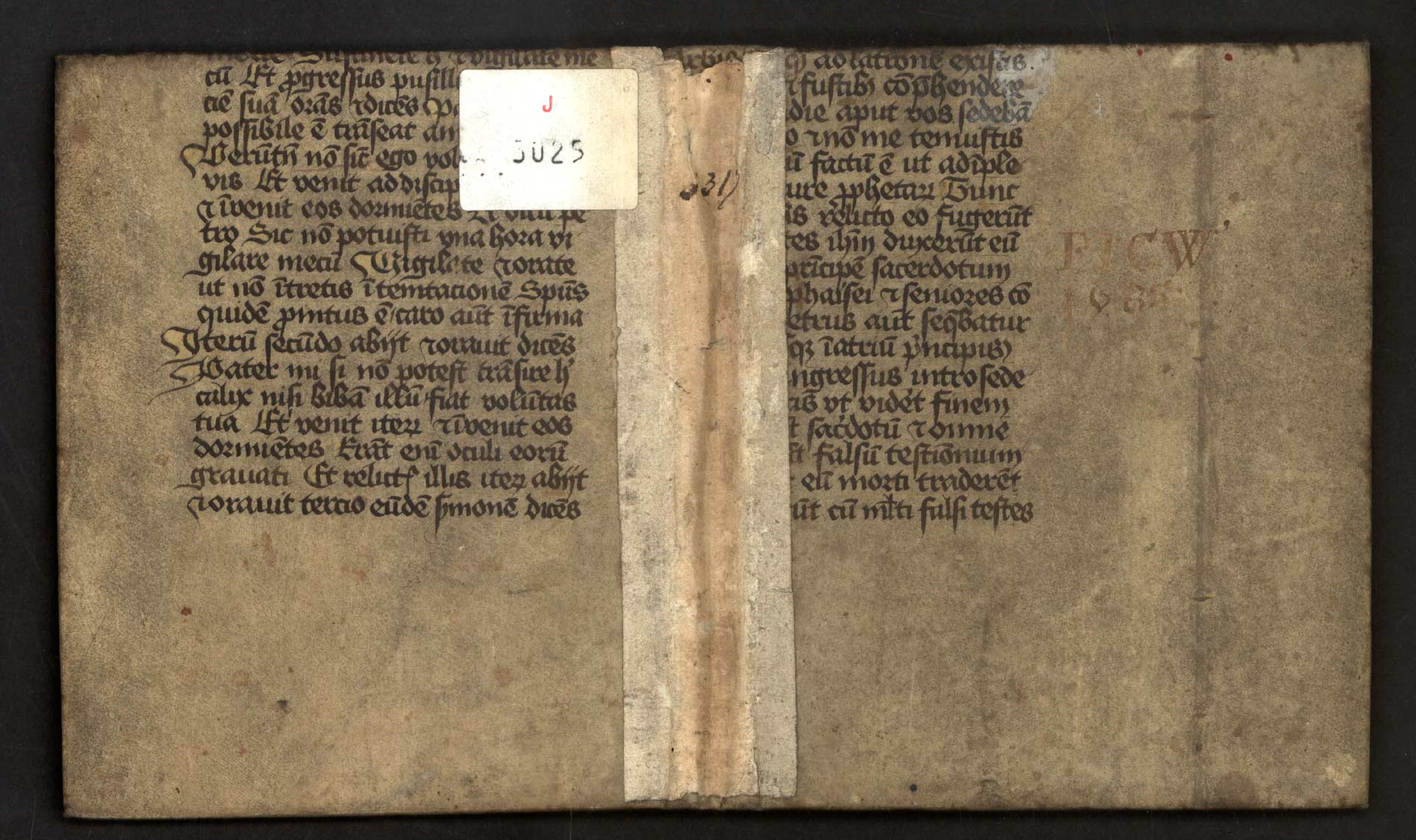 Cb-1-02) Kniha je opatřena vazbou ze sekundárně použitého pergamenu, popsaného gotickou polokursivou.