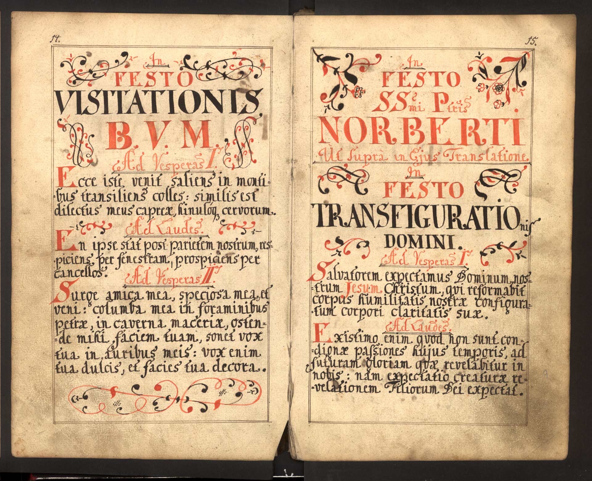 Ca-4-02) Texty k nešporám a ranním chválám na svátek Navštívení Panny Marie a slavnost sv. Norberta.