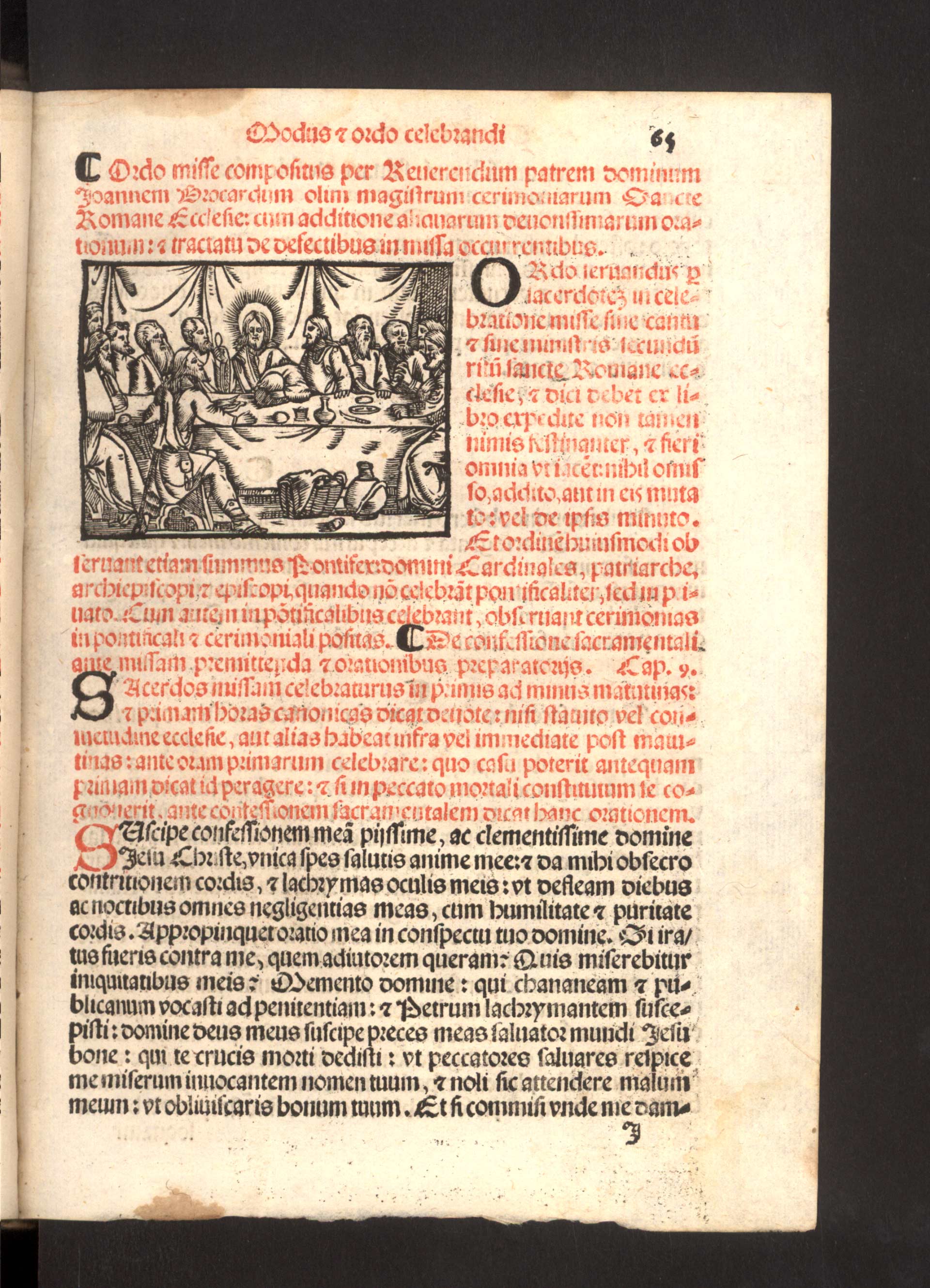 Aa-2-05) Strana obsahující text svatebních obřadů je tištěna černo-červeně (červeně jsou technické poznámky k obřadu). Je opatřena chorální notací a drobným dřevořezem znázorňujícím svatbu v Káně Galilejské.