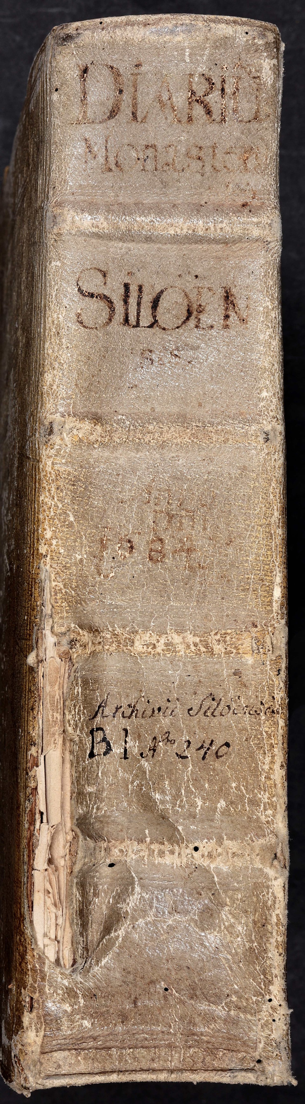 Da-1-19) Hřbet Diaria se signaturou klášterního archivu.