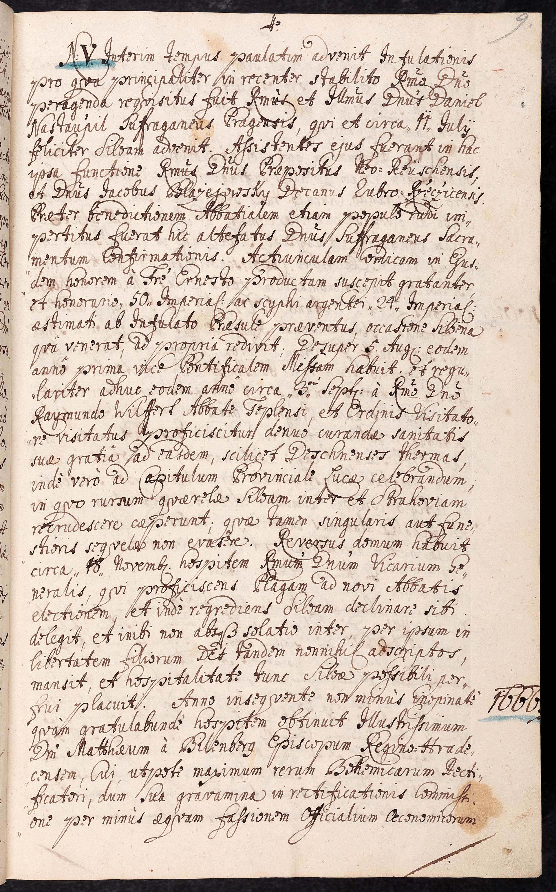 Da-2-07) Pátá stránka druhého dílu želivských Análů zachycující události z roku 1665 a 1666.