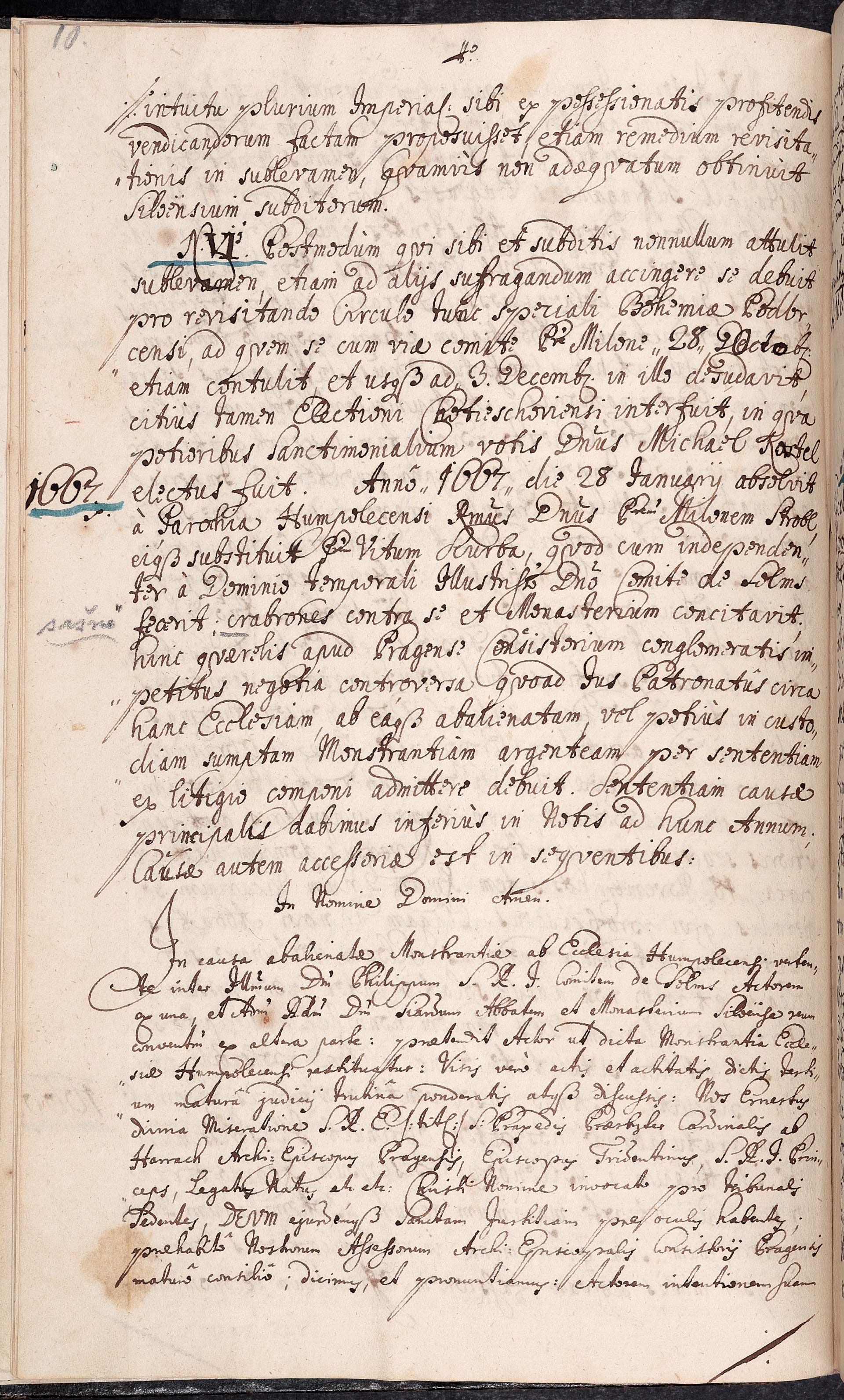 Da-2-08) Šestá stránka druhého dílu želivských Análů zachycující události z roku 1667.