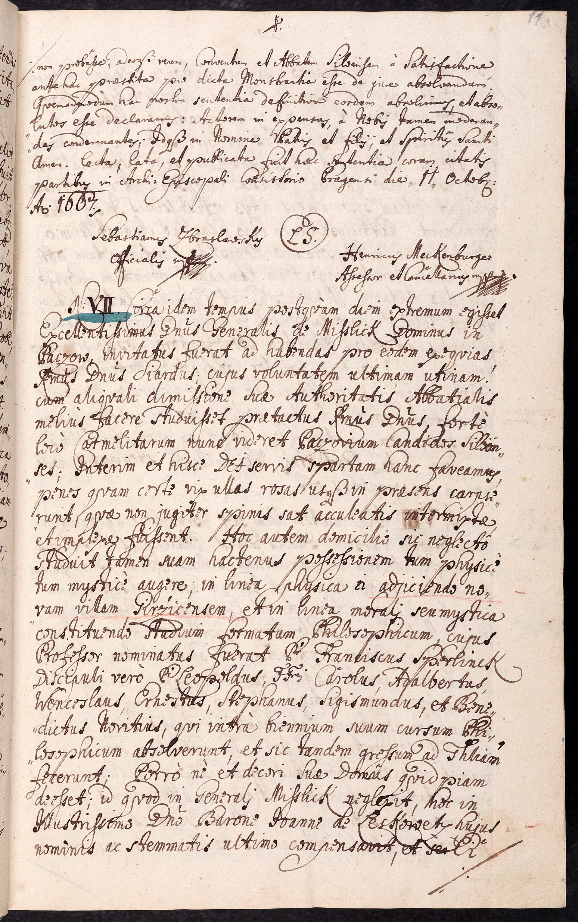 Da-2-09) Sedmá stránka druhého dílu želivských Análů zachycující události z roku 1667.