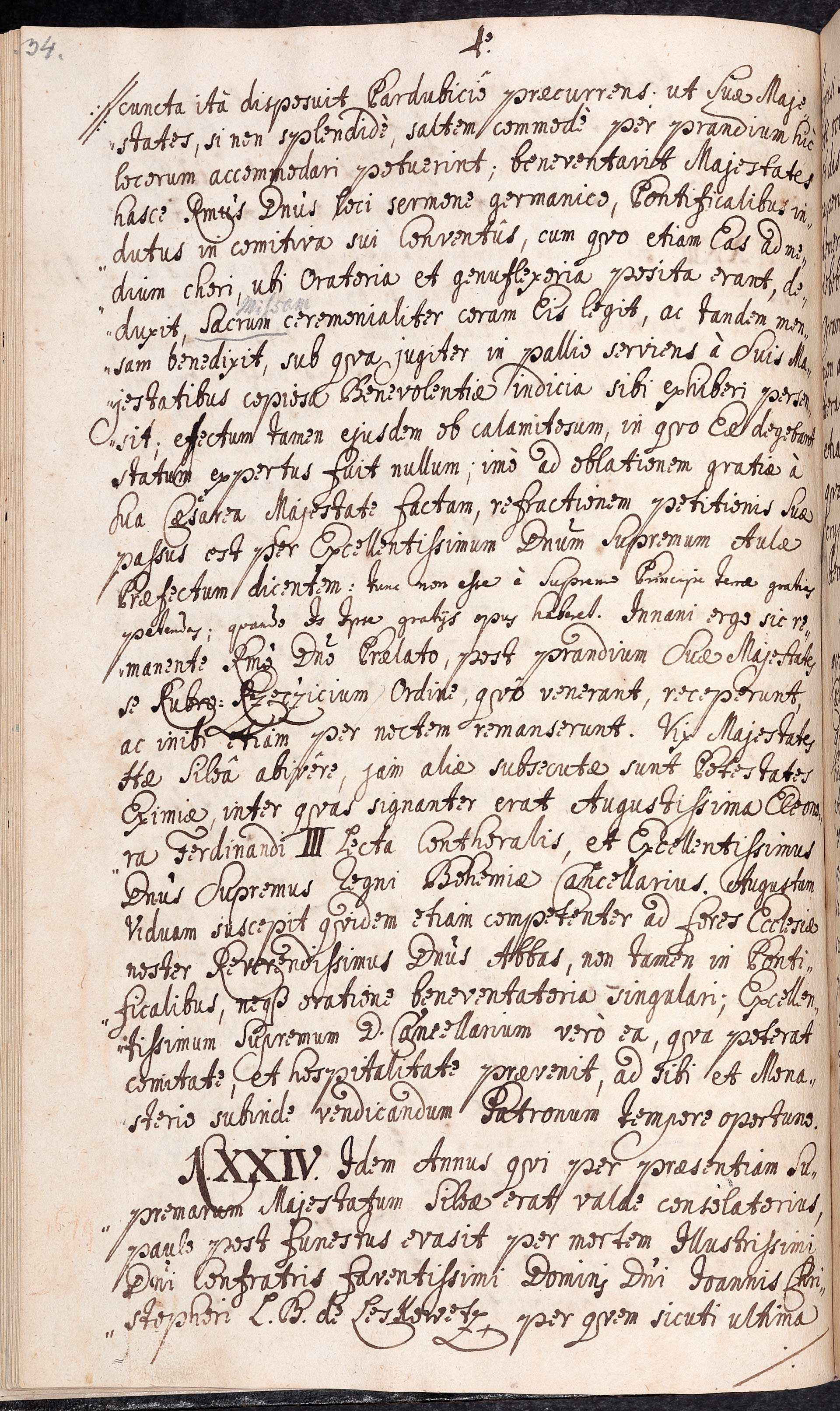 Da-2-13) Čtvrtá strana zachycující události roku 1679 a 1680, mimo jiné i smrt Jana Kryštofa svobodného pána Leskovce, který klášteru odkázal svůj erb.