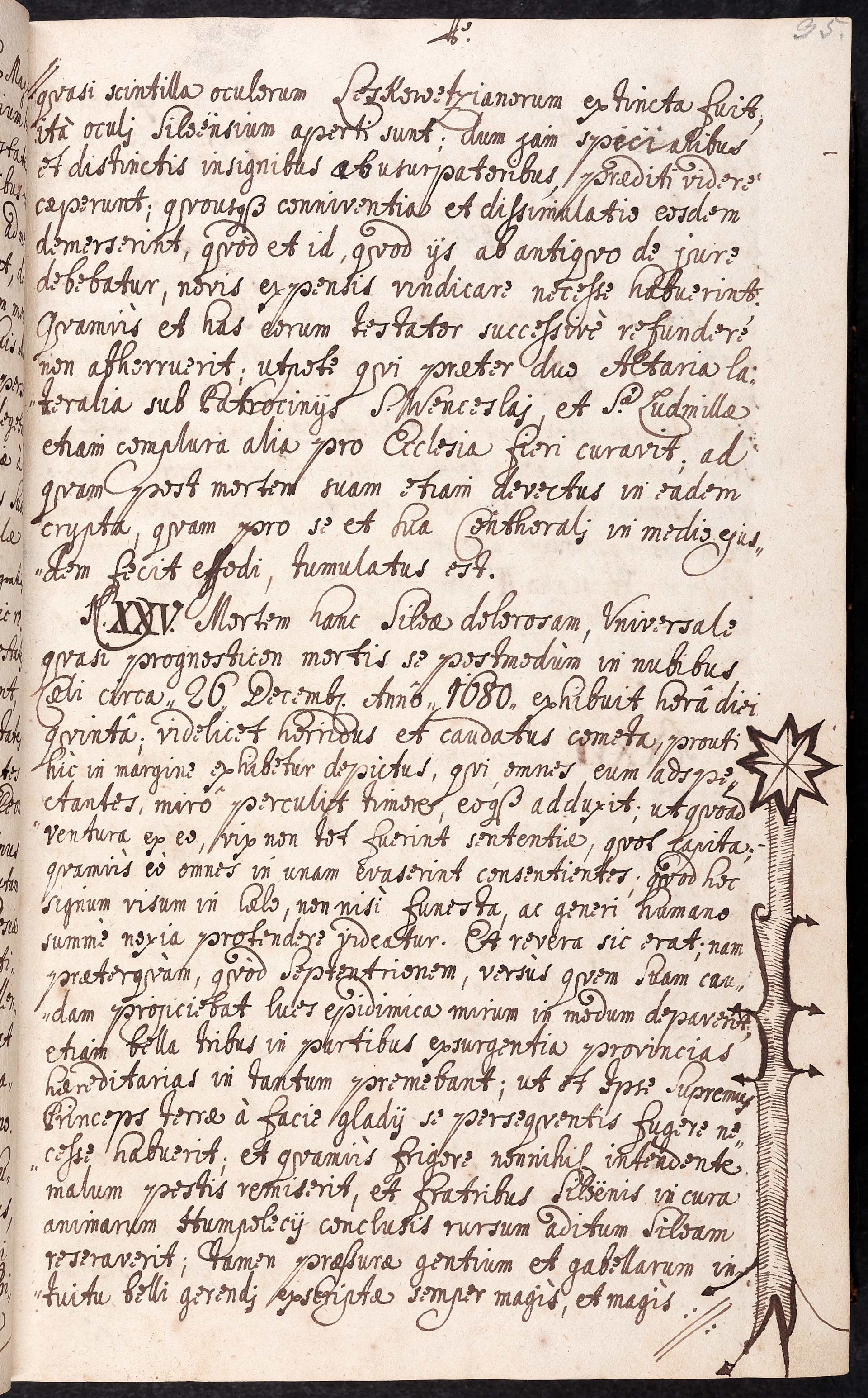 Da-2-14) Pátá strana zachycující události z roku 1680 s nákresem komety.