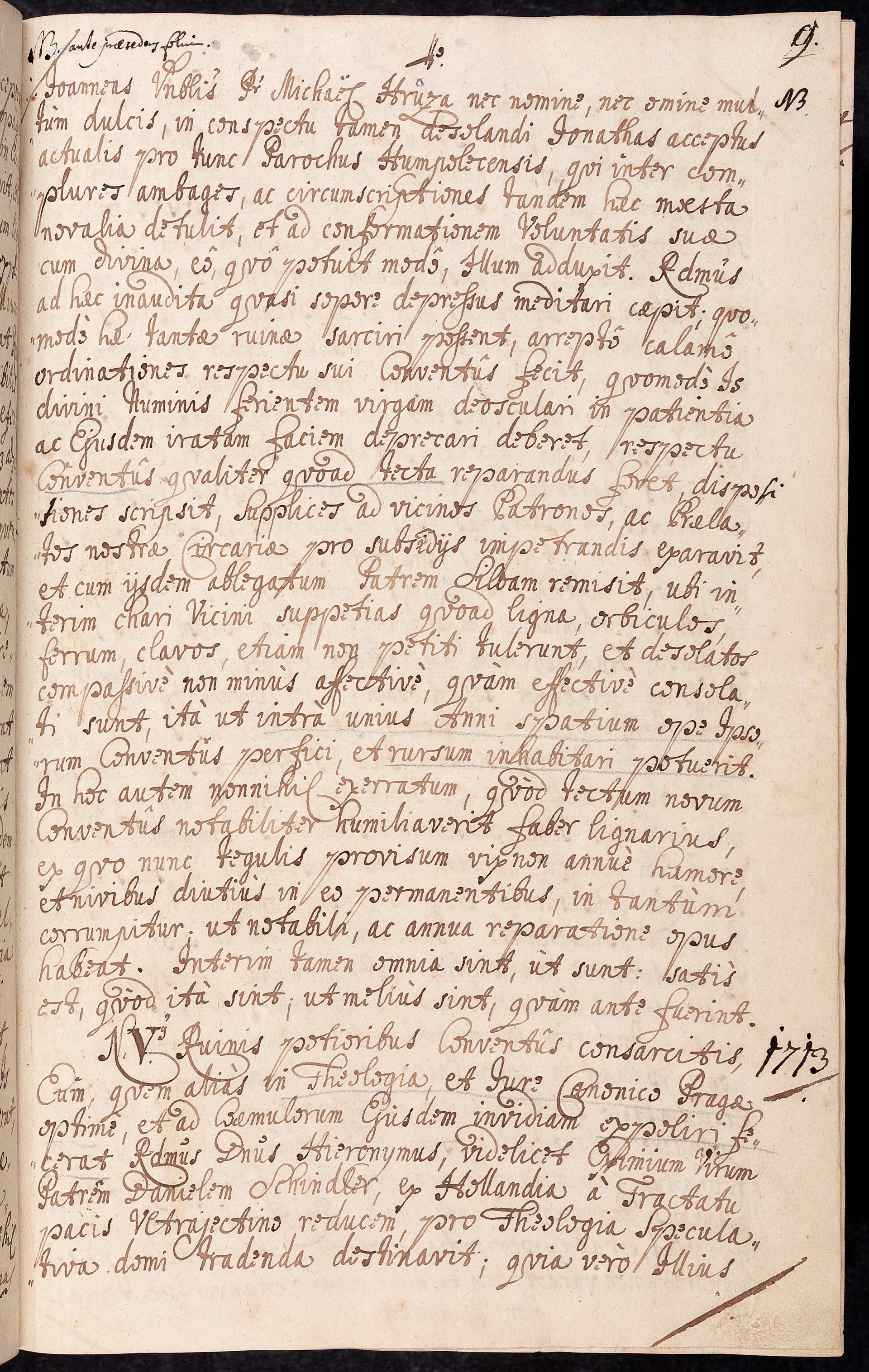 Da-3-08) Třetí strana zachycující následky požáru a průběh oprav kanonie v roce 1713.