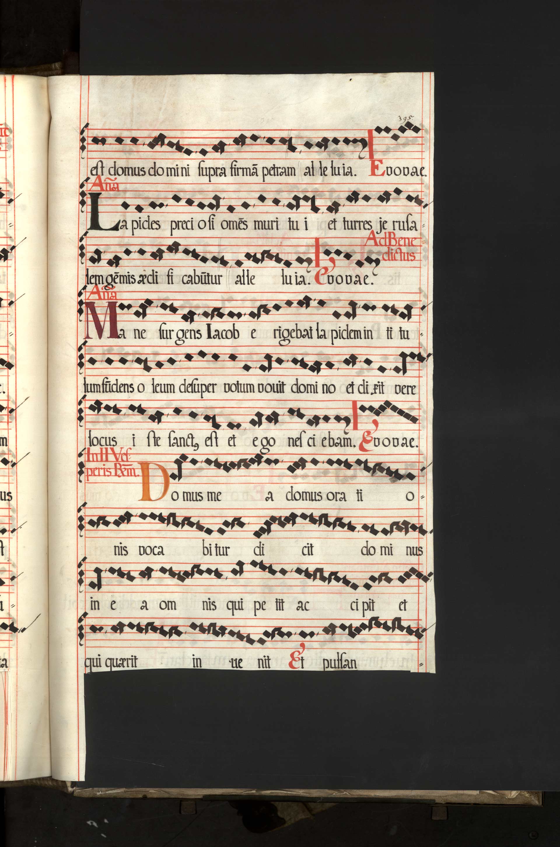 Aa-3-06) Rukopis je psán na pergamenu, některé strany dokládají, že řeholníci v případě náhlé potřeby neváhali oříznout prázdné okraje listů.