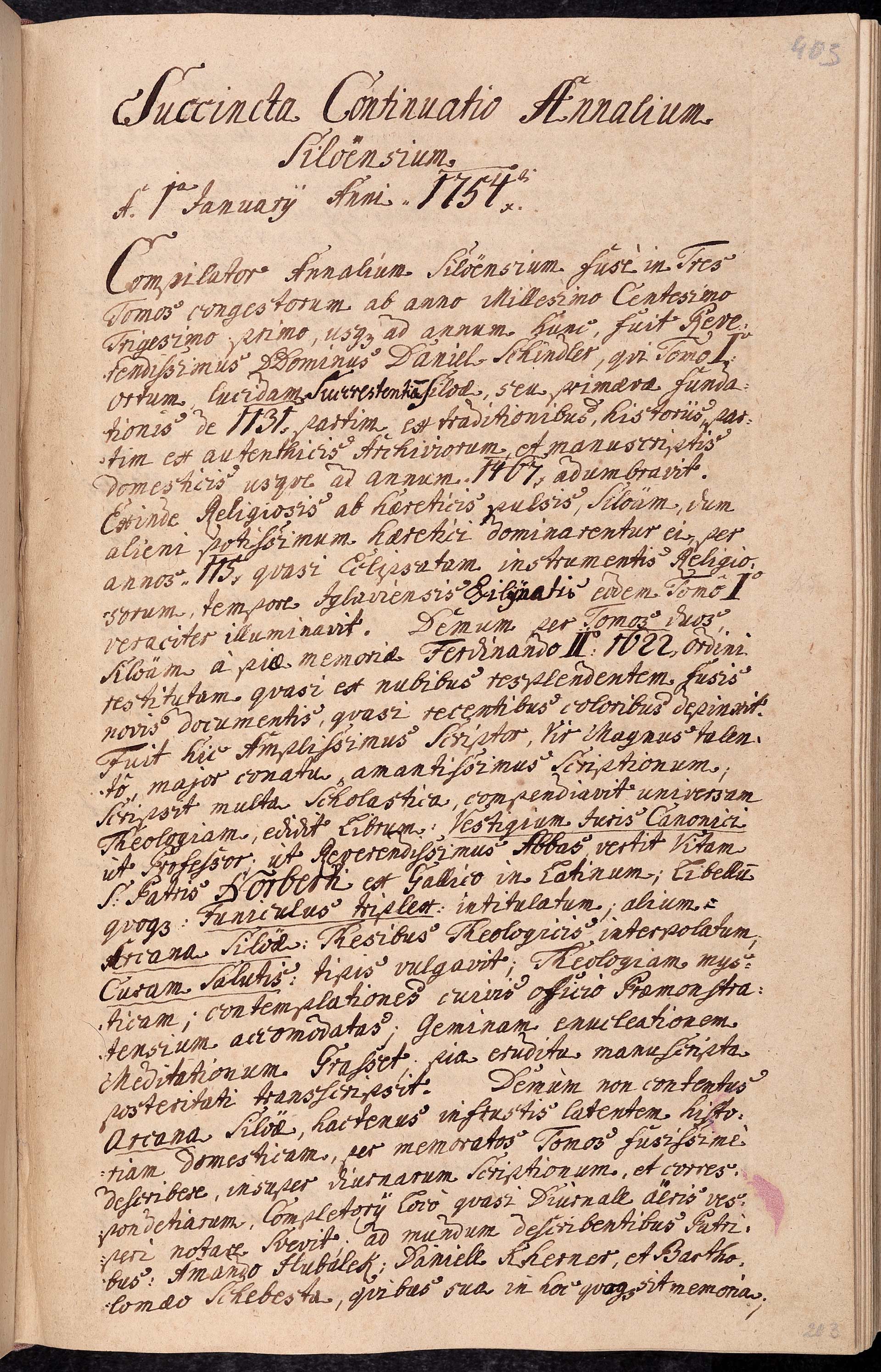 Da-4-01) První strana čtvrtého dílu želivských Análů zachycujících události z let 1754-1784.