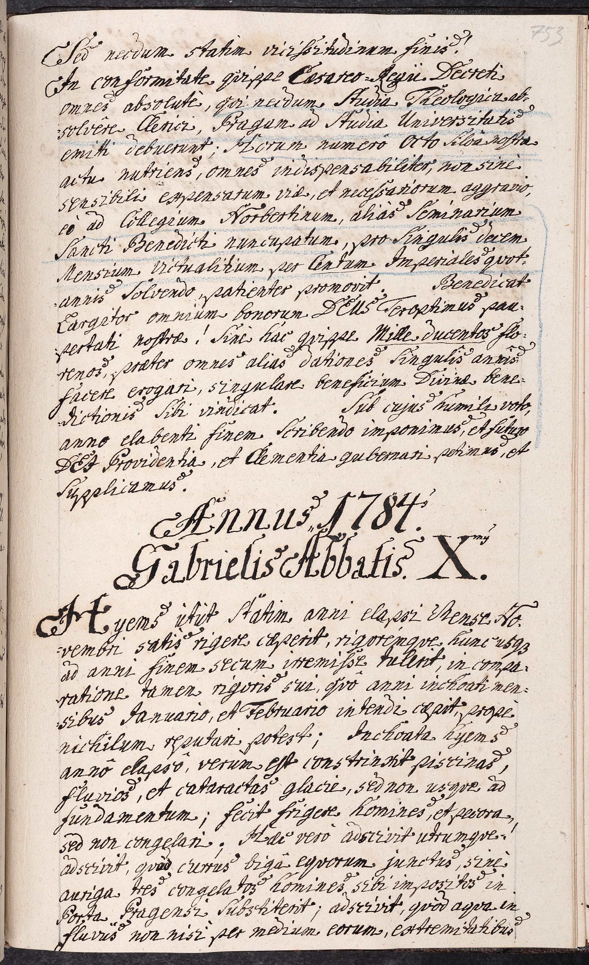 Da-4-20) Předposlední strana čtvrtého dílu želivských Análů zachycující události roku 1784.