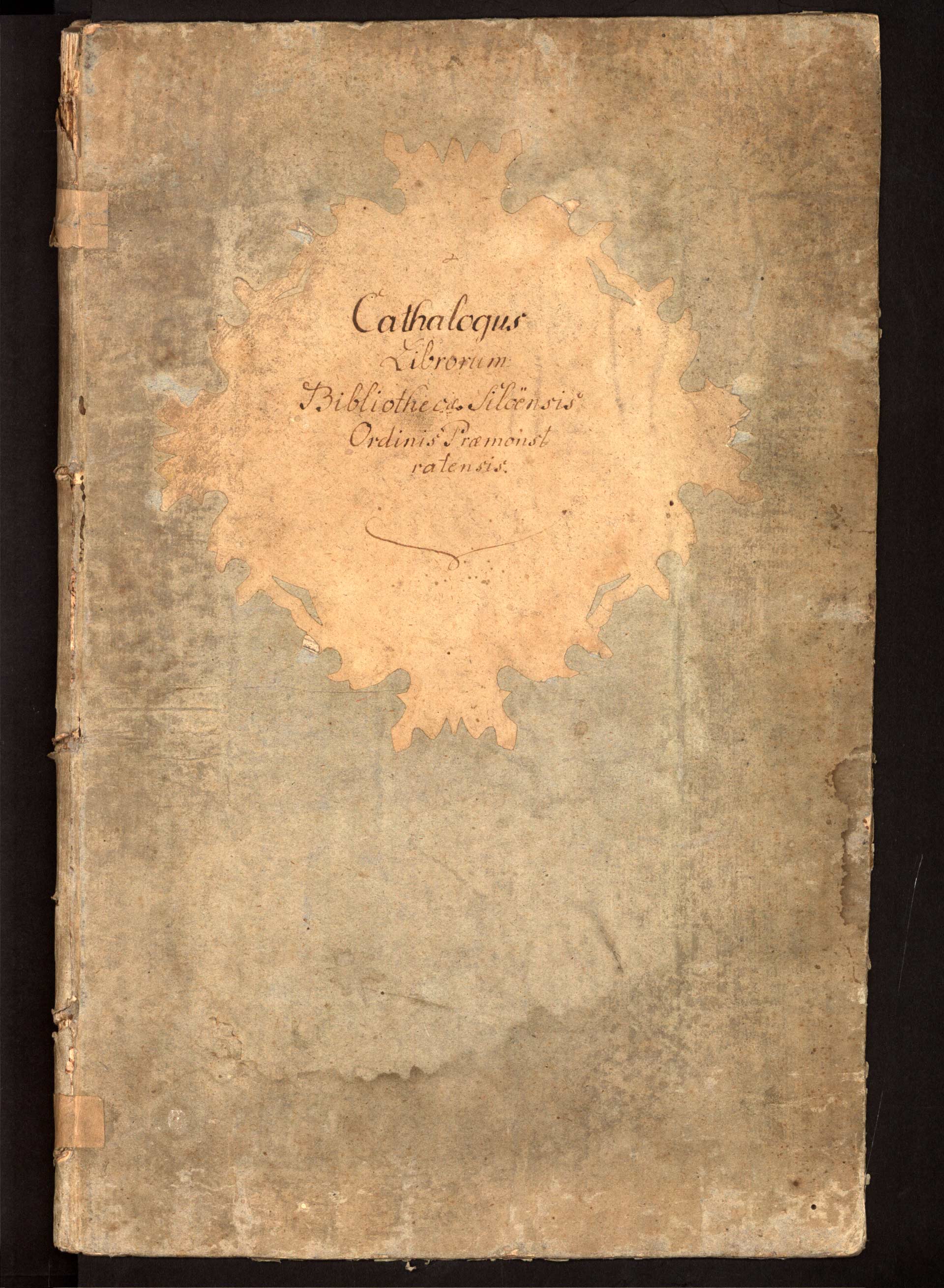 Db-1-01) Titulní list nejstaršího dochovaného katalogu želivské klášterní knihovny vzniklého na počátku 90. let 18. století díky úsilí tejdejšího knihovníka Norberta Schmischowského. Knihy jsou zde rozděleny do devíti skupin, které jsou označeny římskými číslicemi a korespondují s dochovanými signaturami na hřbetech některých svazků.