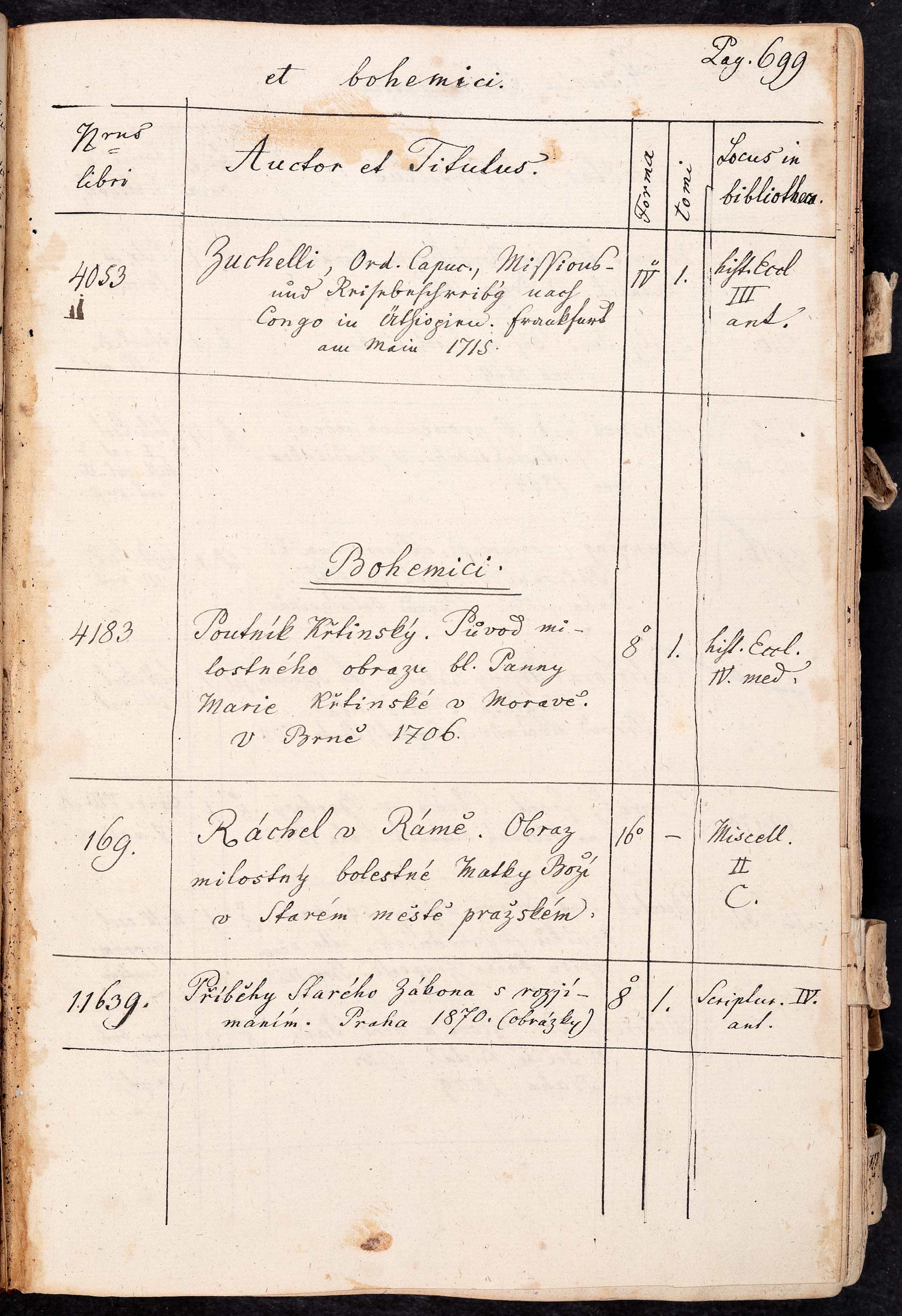 Db-2-04) Na straně 699 začínají knihy z oboru církevních dějin psané v češtině.
