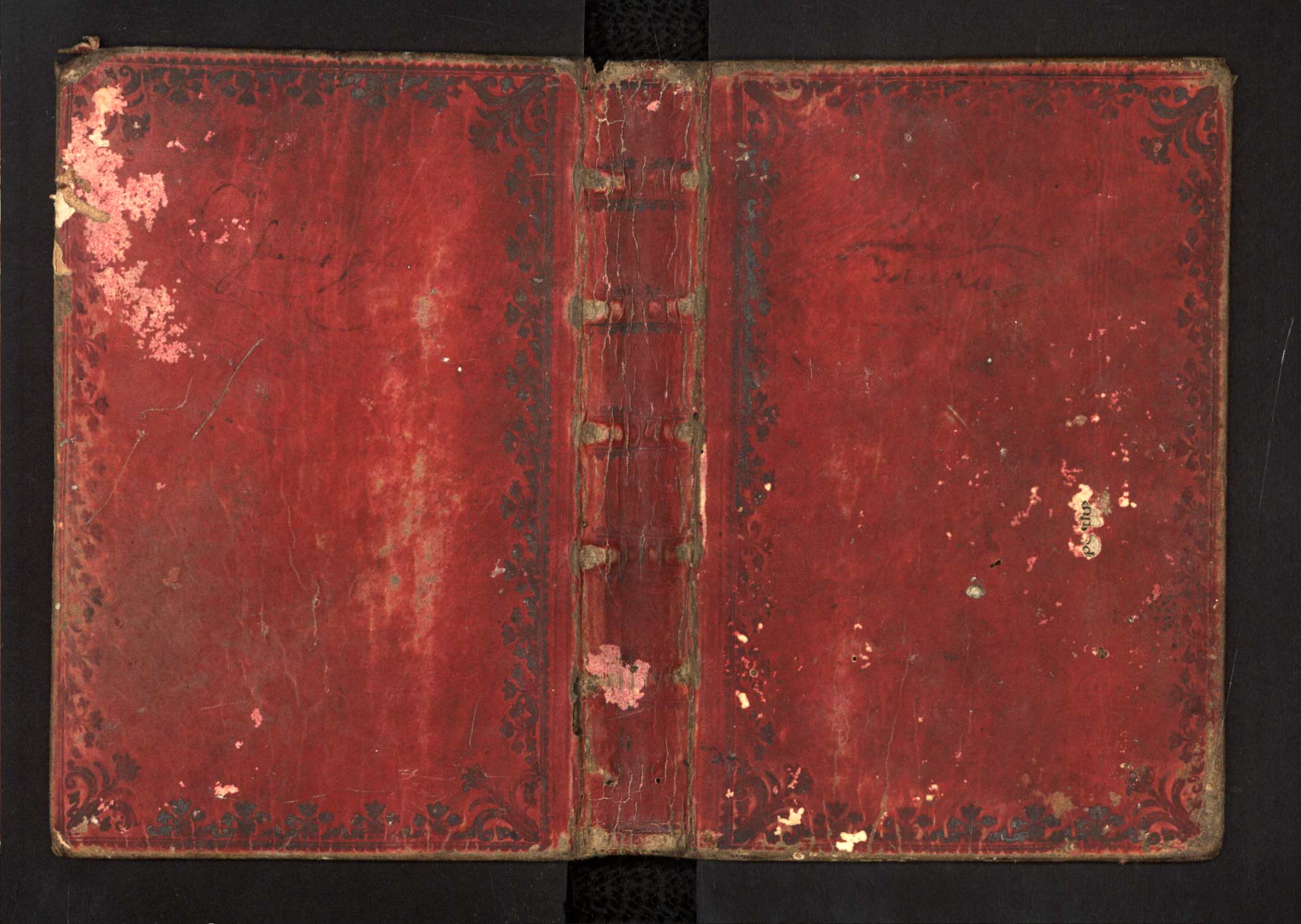 Ea-2-05) Kniha má červenou, patrně pergamenovou, vazbu, zdobenou zlatým tiskem.