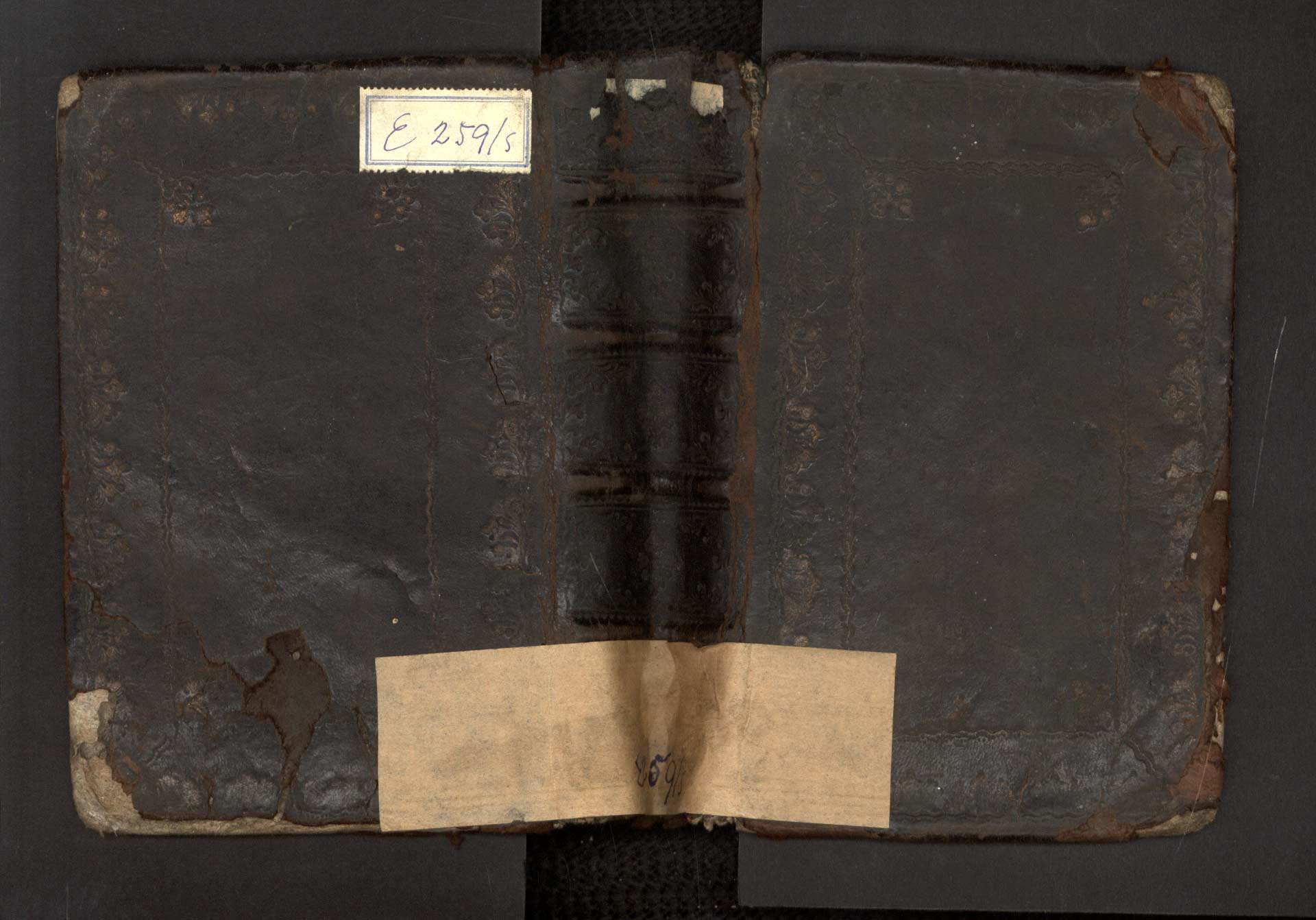 Ea-3-06) Kniha je opatřena hnědou koženou vazbou zdobenou zlatým tiskem.