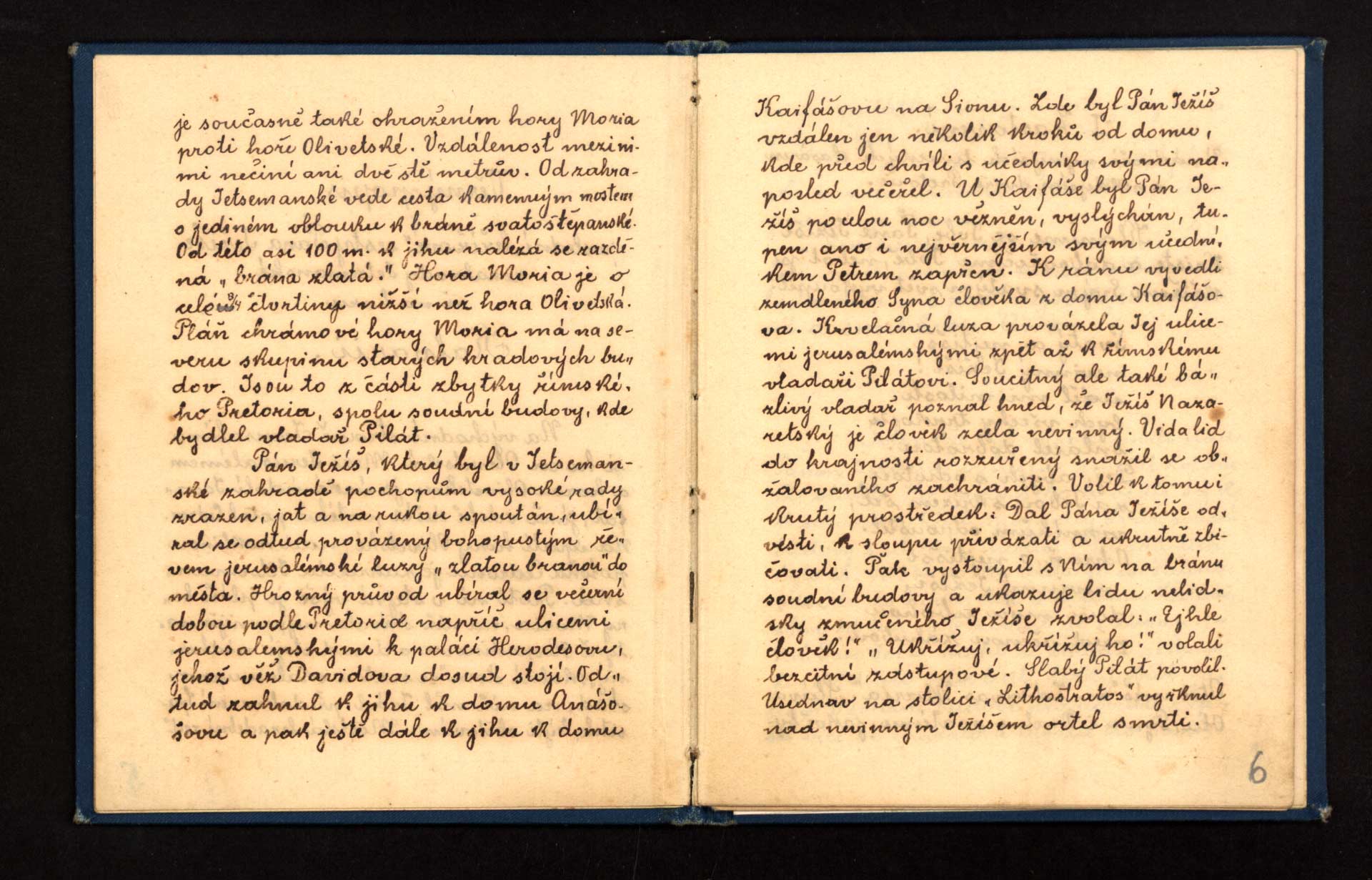 Eb-1-04) Pokračování: první dvojlist popisu křížové cesty.