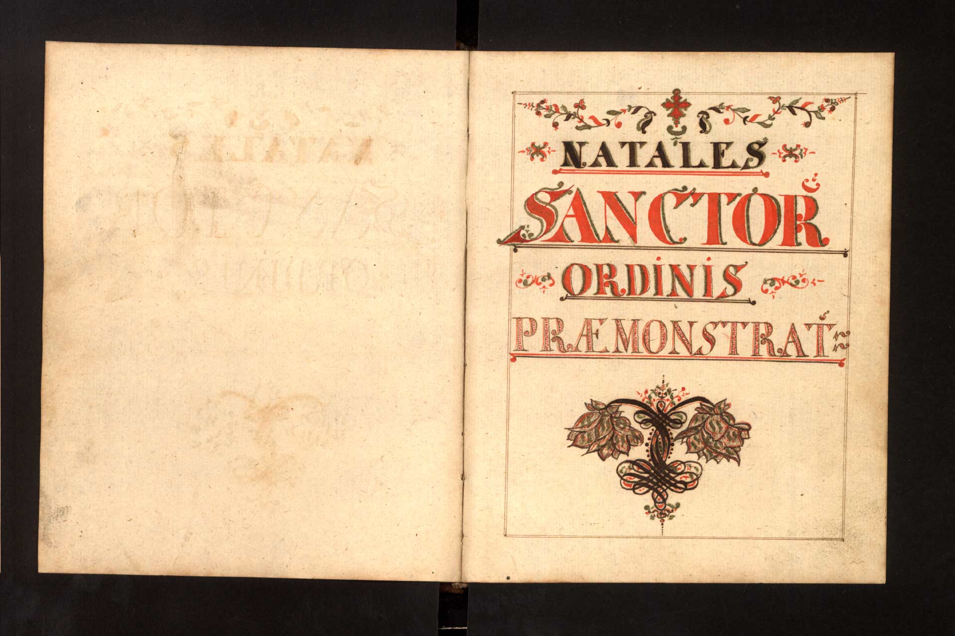 Fb-2-01) Rukopis nazvaný "Natales sanctorum Ordinis praemonstratensis" je opisem části tisku, který sepsal a v Antverpách v roce 1625 vydal Jean Chrysostome van der Sterre.