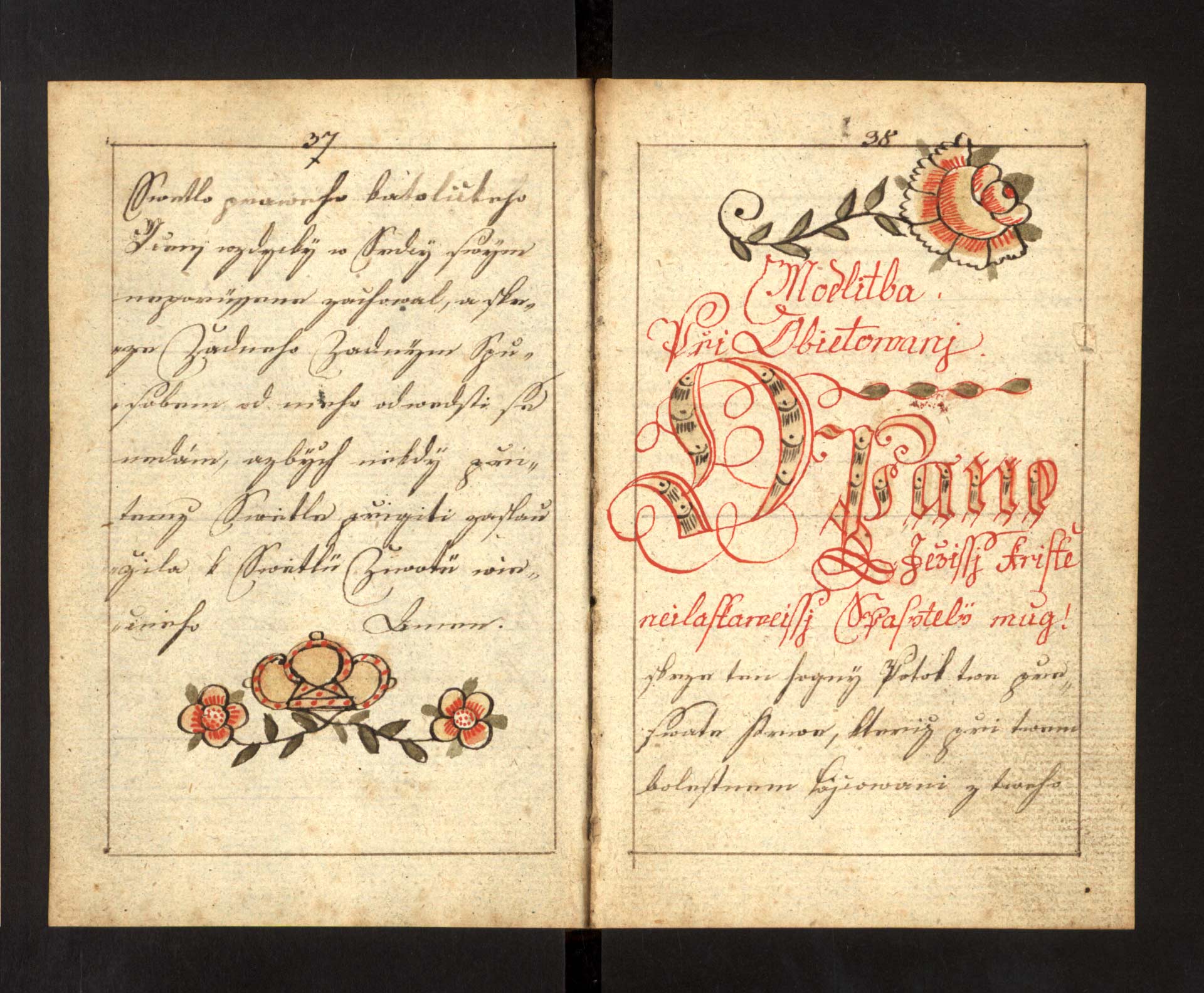 Ga-3-03) Kreslená a kolorovaná výzdoba knihy je postavena na použití červeného, žlutého, zeleného a černého inkoustu a napodobuje prostředky používané v typografii. Nalezneme zde jak úvodní motiv růže suplující vlys, tak niciálku i vinětu na konci strany.