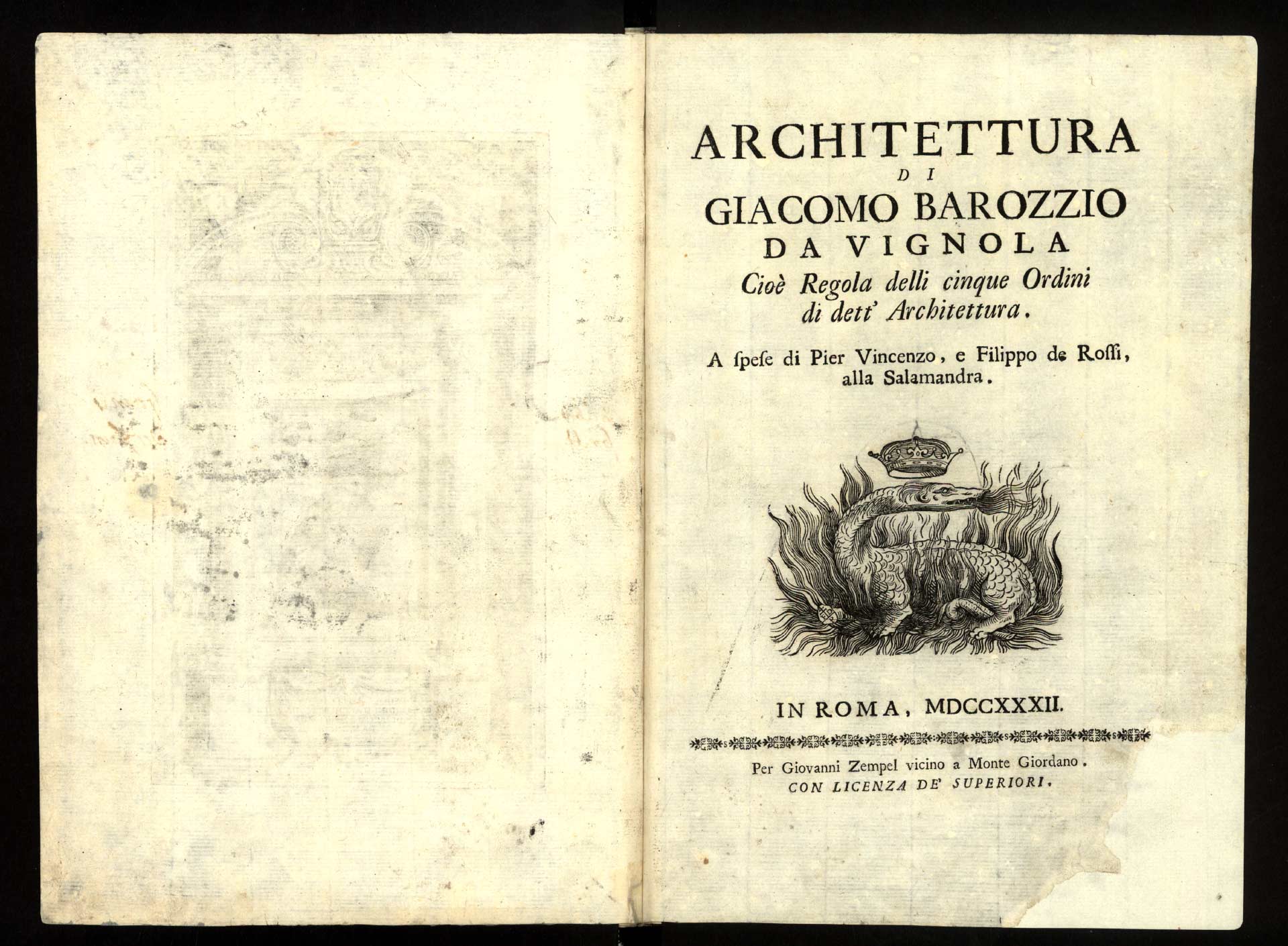 Hb-4-02) Titulní list římského tisku z roku 1732 je doplněn signetem autora, provedeným opět technikou mědirytiny a představujícím korunovaného salamandra.