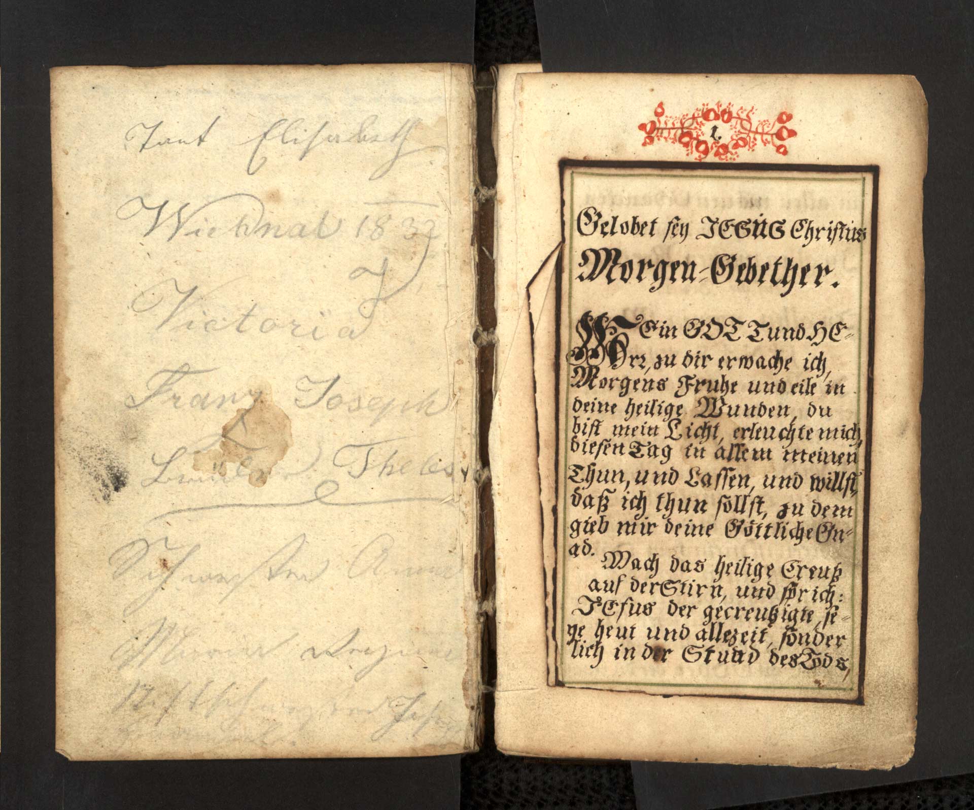 Hb-5-10) Podle přípisků tužkou na rubu přední předsádky byl tento svazek majetkem Elizabeth Wiehnal roku 1832.