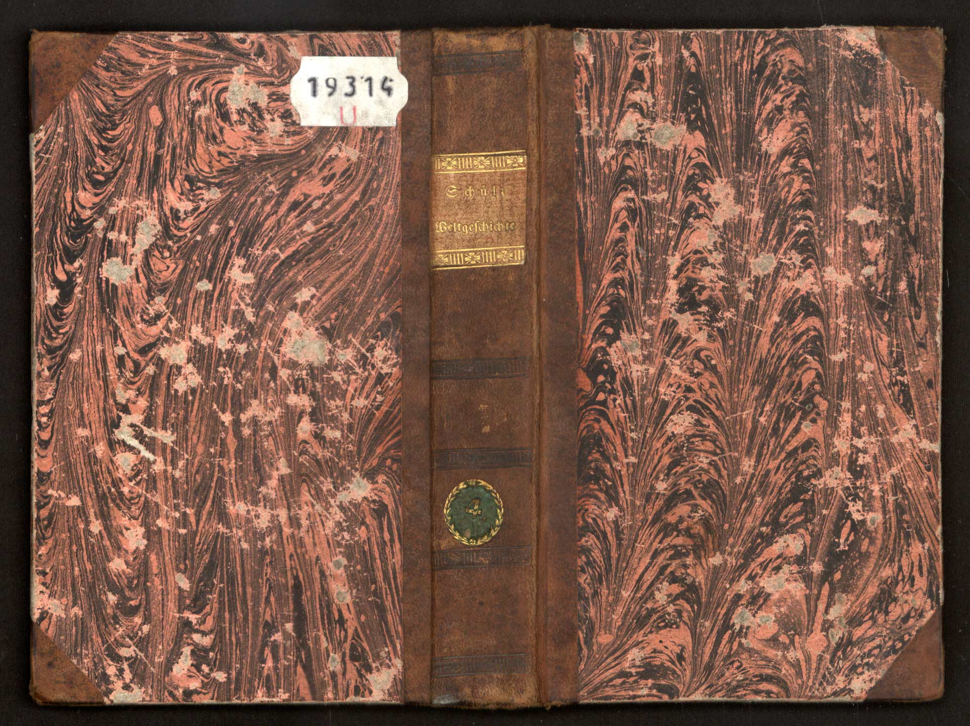 Hb-7-02) Kniha je opatřena polokoženou vazbou. Na hřbetu má barevné papírové štítky s názvem díla a číslem svazku, provedené zlatým tiskem.