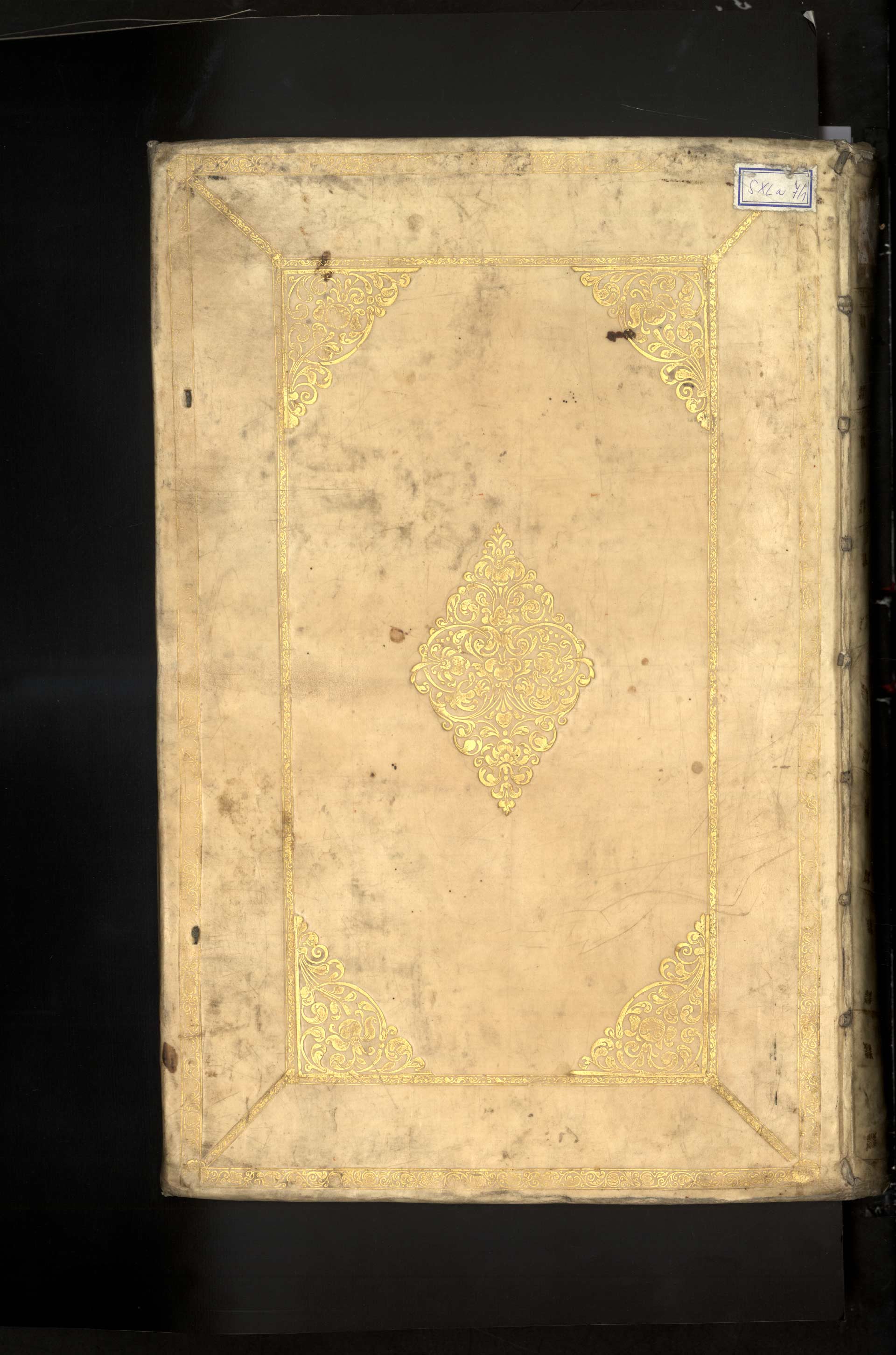 Hc-1-07) Všech šest svazků atlasu, které želivská klášterní knihovna vlastní, je vevázáno v pergamenové vazbě zdobené perspektivní bordurou s dominantou, které jsou provedeny zlatým tiskem.