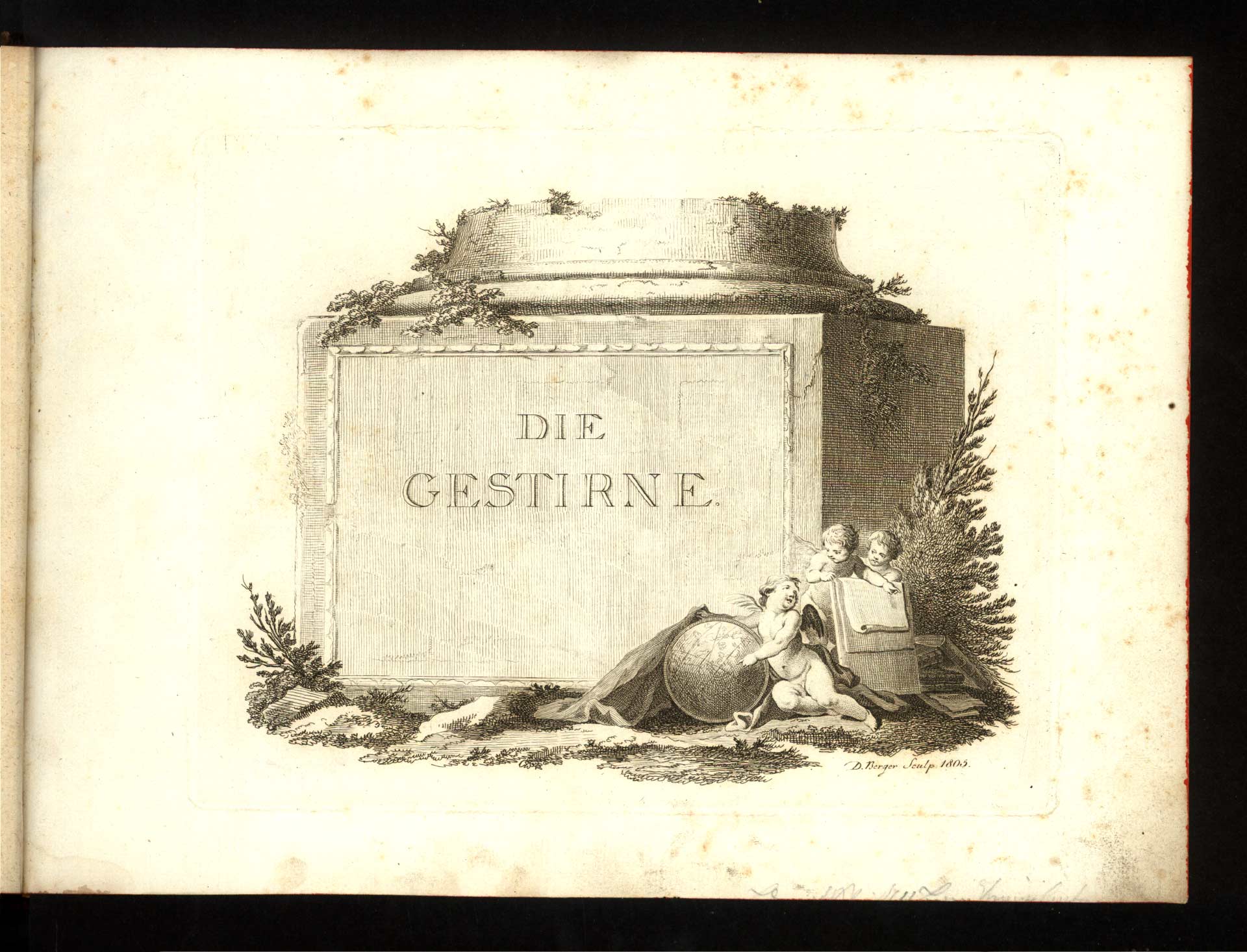 Hc-4-01) Atlas hvězdné oblohy vznikl na začátku 19. století. Mědirytinový titulní list je signován "D. Berger sculpsit" 1805.