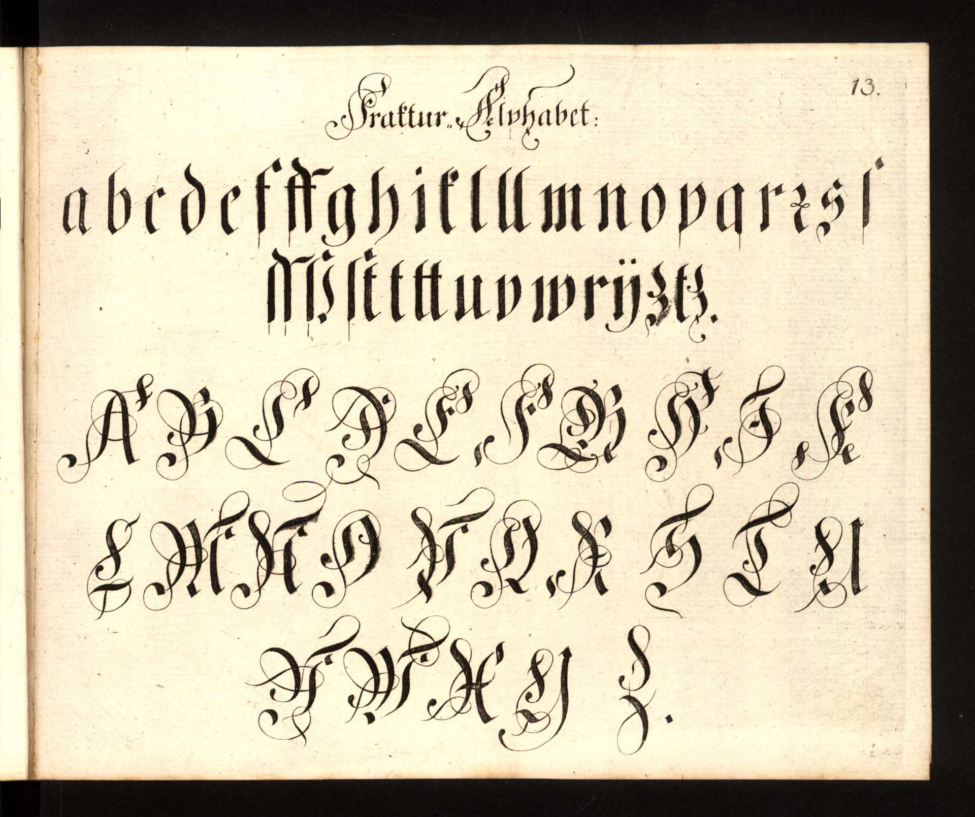 Hd-1-08) Velká a malá abeceda německého novogotického kresleného písma - fraktury.