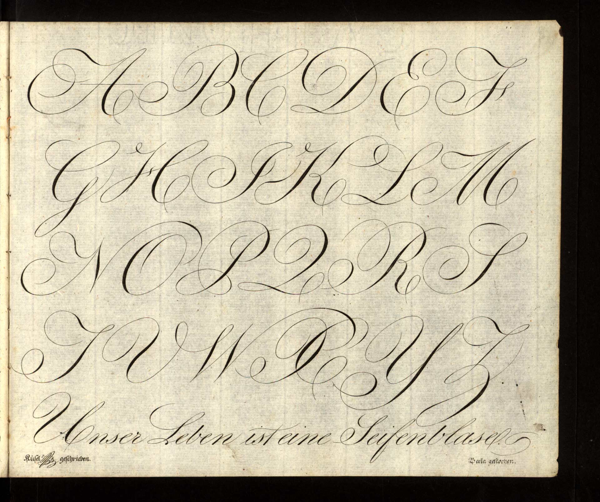 Hd-2-09) Velká abeceda a ukázka humanistické kursivy.