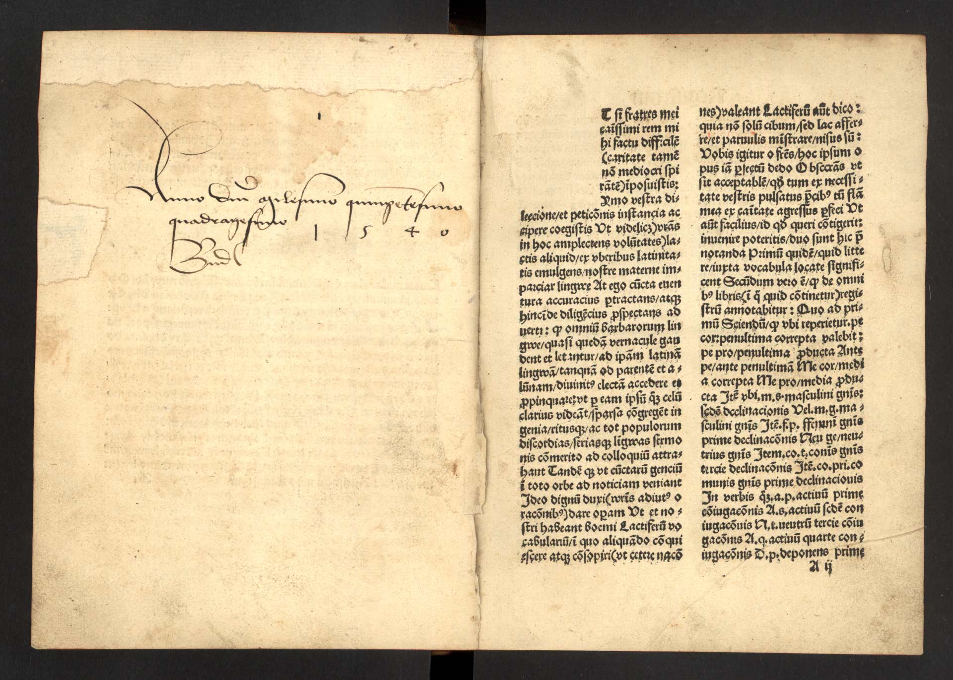 Ja-2-02) Latinská předmluva je na prázdné levé straně doplněna datací "1540".