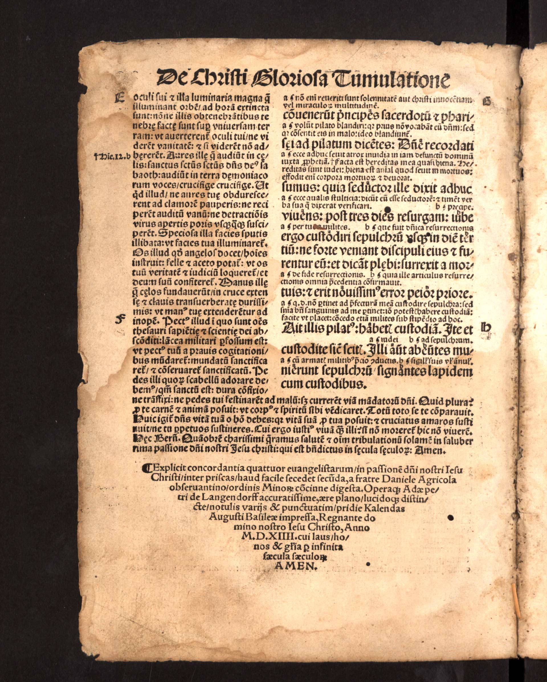 Ja-3-07) Z předposlední strany paleotypu se opět dozvídáme, kdy a kde byl vytištěn: v Basileji v dílně Petra de Langendorffa roku 1514.