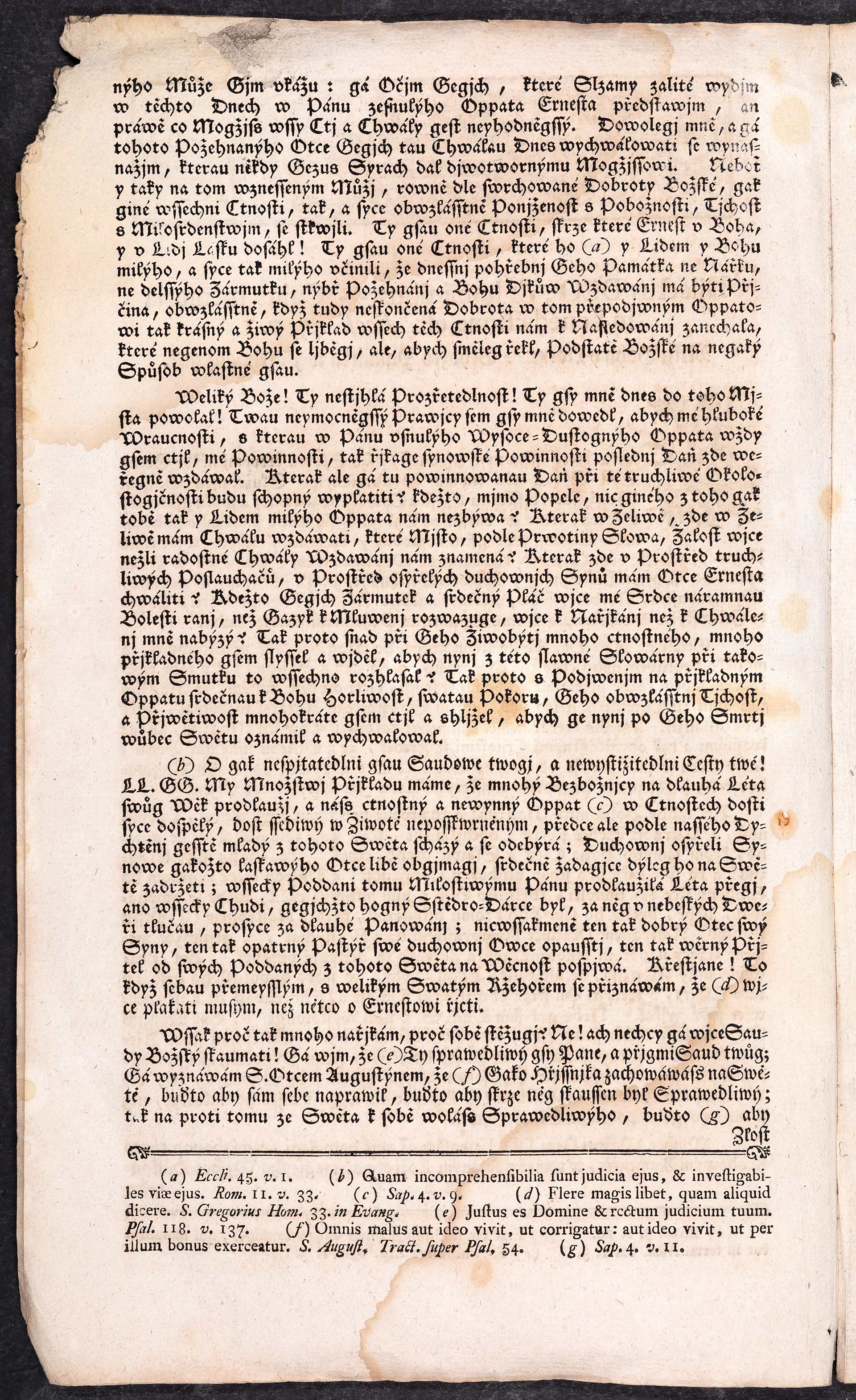 Jb-3-03) Druhá strana kázání, pod čarou jsou uvedeny odkazy na biblické knihy a díla církevních Otců.
