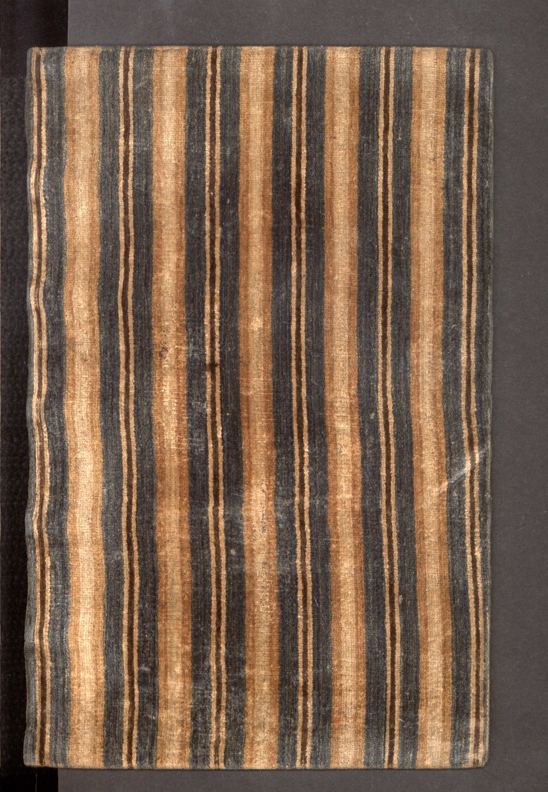 Bc-1-01) Textilní vazba z růžovo-modrého pruhovaného sametu.