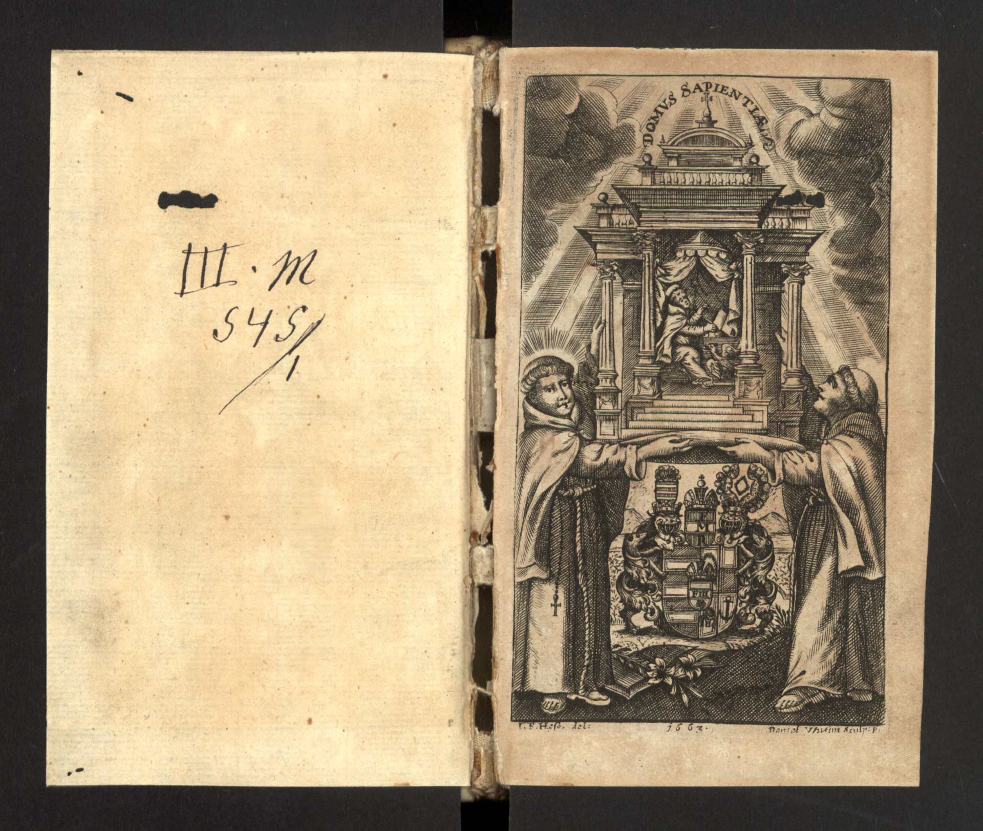 Ca-1-02) Grafický titulní list knihy vznikl dle návrhu I. F. Hesse a byl vyryt Danielem Wusinem. Zobrazuje irské františkány držící obraz, na němž je bl. Jan Duns Scotus.