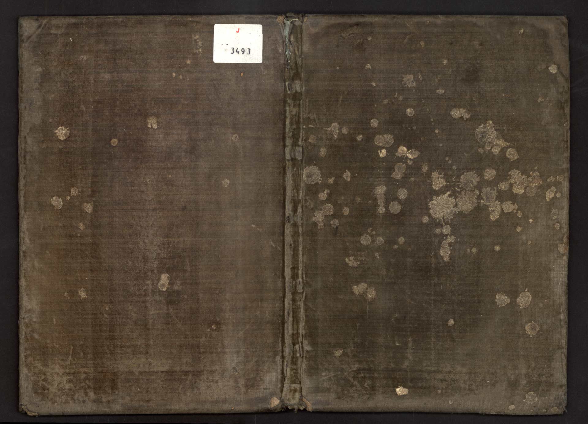 Ca-2-05) Kniha je vázána v šedozeleném sametu. Nese stopy používání - kapky vosku.